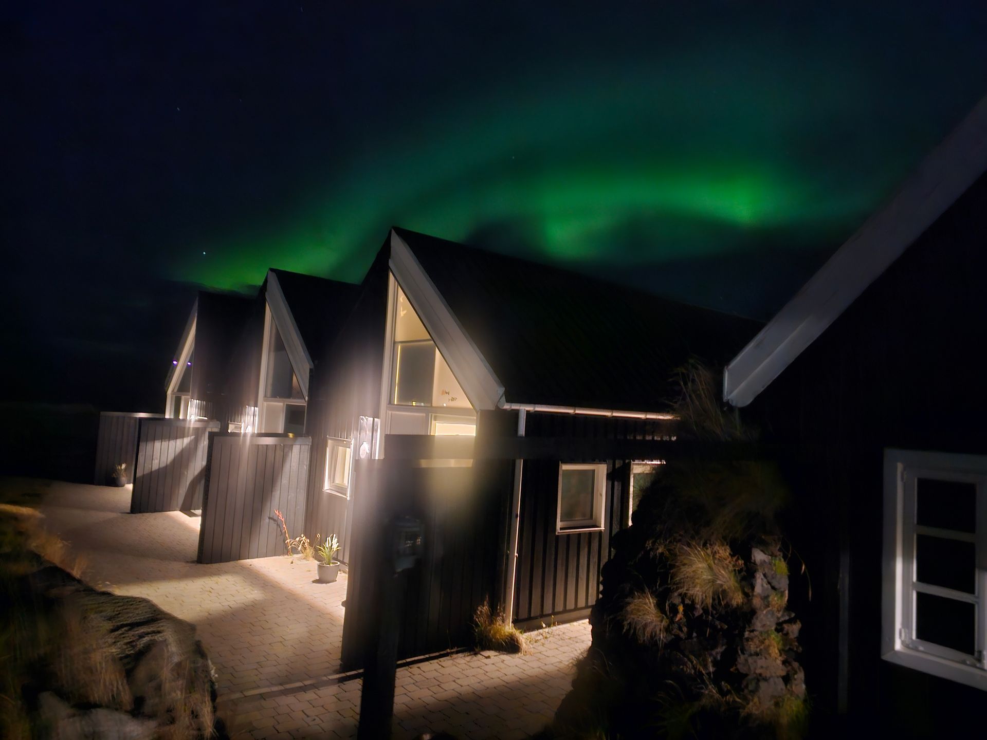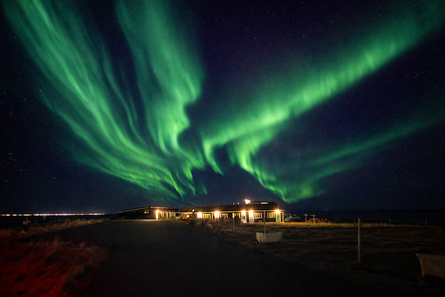 Þú getur slakað á í heita pottinum undir stjörnunum, farið í kvöldgöngu við sjóinn eða einfaldlega sest niður með kaffibolla, hægt á þér og beðið eftir að norðurljósin láti sjá sig. Stundum sjást þau snemma kvölds, stundum síðla nætur, en þegar þau birtast er eins og allur himinninn sé að dansa, aðeins fyrir þig. Hér er engin ljósmengun, enginn asi og þú ert ekki á leiðinni neitt annað. Þú þarft ekki að keyra tímunum saman til að eltast við norðurljósin. Stígðu bara út fyrir dyrnar, andaðu að þér hreinu lofti og horfðu til himins.